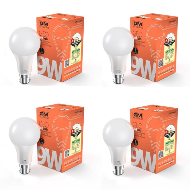 GM GEO 9 Watt LED BULB, 6500K White Cool Day Light Bulb Pack of 4